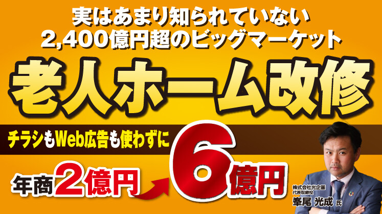 本日は「老人ホーム改修工事新規受注戦略」についてお伝えします。