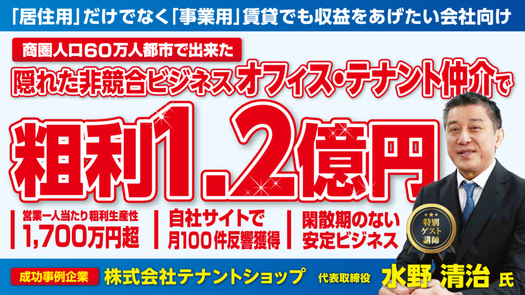 粗利1.2億円を稼ぐテナントビジネス新規立ち上げセミナー