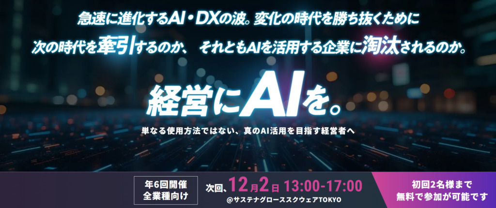 📣 AI経営の最前線を“リアル事例”で体感!12月度AI経営フォーラム開催決定!